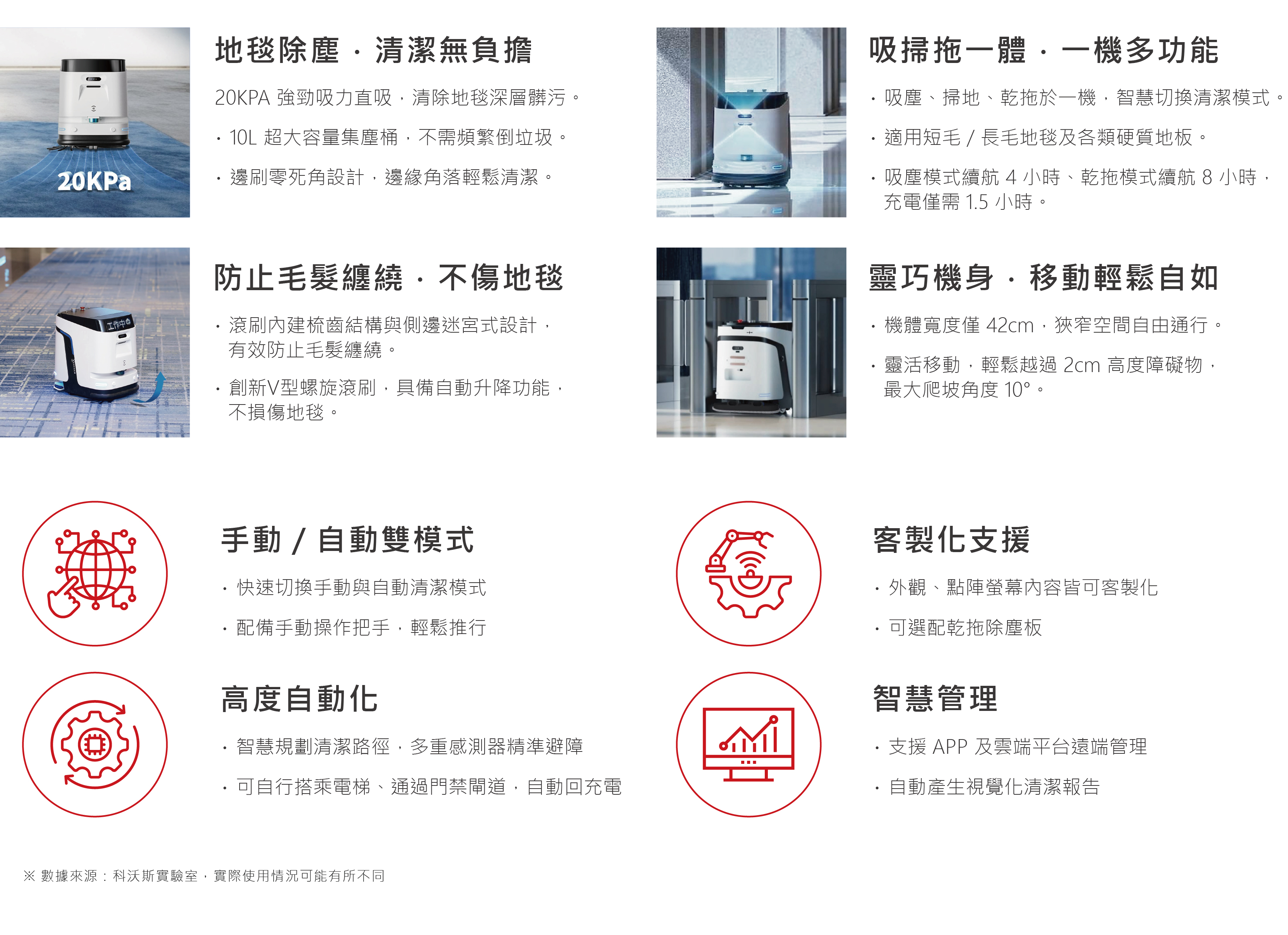 專為中小型場域設計的高效率、智慧導航的無人駕駛式商用掃地機器人。
